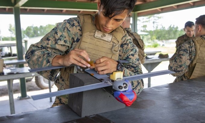 Một chiếc Switchblade được lính Mỹ kiểm tra trước đợt diễn tập hồi năm 2021. Ảnh: USMC.
