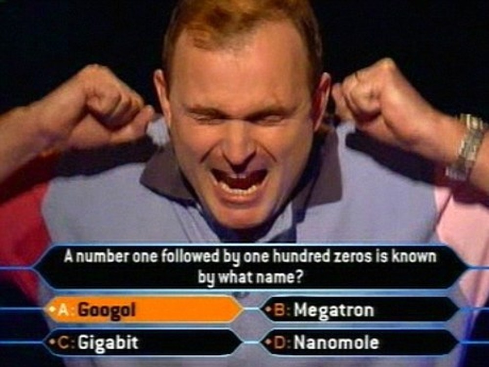 Ban đầu, Ingram nói rằng đáp án có thể là "nanomole" (một phần tỷ), tuy nhiên ông ta đã thay đổi ý định một cách nhanh chóng để chuyển sang câu trả lời "googol", dù chưa từng nghe đến khái niệm này. Nếu cho đáp án sai, Ingram sẽ mất đi số tiền 468,000 bảng đã kiếm được cho 14 câu hỏi trước đó.