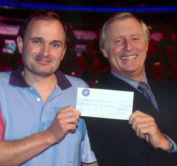 Charles nhận tấm séc 1 triệu bảng từ MC Chris Tarrant