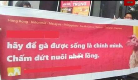 Phong trào giải phóng gà trên khắp châu Á hiện đã về tới nước ta. Những bức ảnh người người ủng hộ Gà với tấm Băng-rôn. "Hãy để gà được sống làm chính mình, chấm dứt nuôi nhốt lồng" đã xuất hiện trên mạng xã hội Việt Nam những ngày qua.