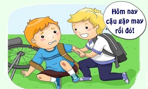 Trong lúc Tèo còn chưa kịp hiểu chuyện gì xảy ra thì cậu bé kia vừa đỡ anh dậy vừa cười nói: