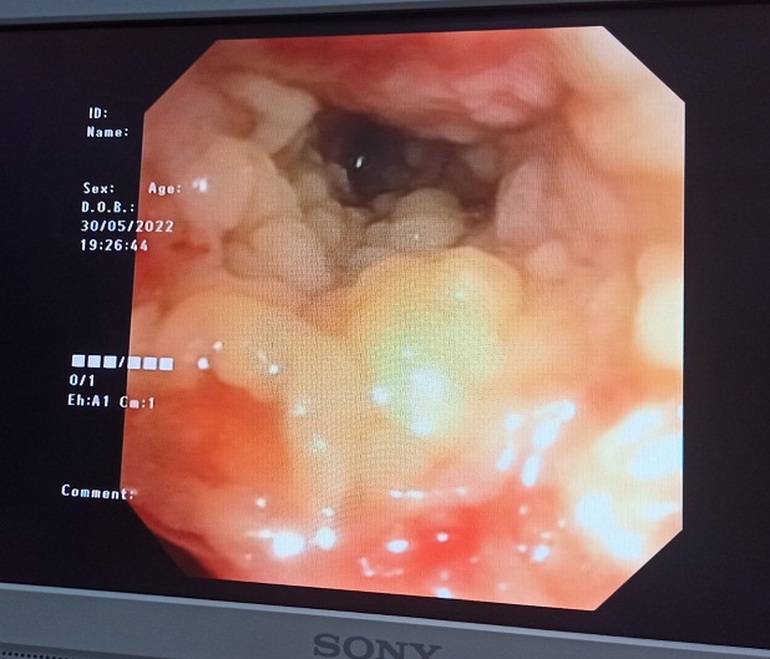 Ngay trong ngày 30/5, bệnh nhân được nội soi phế quản xuất hiện nhiều các mảng giả mạc thùy dưới phổi 2 bên.