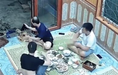 Theo đoạn clip, mâm mồi nhậu trông khá đầy đủ và nhiều thức ăn. Lúc này, cả 3 người đàn ông cũng ngồi vào mâm xong xuôi, chuẩn bị rót rượu ra nữa là có thể nhập tiệc. Tuy nhiên, một sự cố bất ngờ đã xảy đến. Theo đó, trong lúc rót rượu, một người đàn ông đã sơ ý làm rơi bình rượu ngâm khiến chiếc bình vỡ tan, rượu chảy lênh láng...