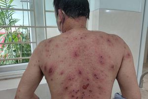 Kể từ lúc đó, bệnh bắt đầu có hiện tượng phát ra ngoài nhưng bệnh nhân không để ý nên uống thêm đến chén thuốc thứ 9. Khi da đầu bị tróc vảy và cảm thấy nóng râm ran trong người, bệnh nhân lúc này mới ý thức được hậu quả, dừng không uống thêm đồng thời lập tức nhập viện.Qua thăm khám, các bác sĩ Khoa Da liễu ghi nhận: Bệnh nhân bị ngứa nhiều, trên da có nhiều mảng dát đỏ, mụn mủ, loét da, bong vảy, có chỗ nứt da, rỉ dịch lan tỏa thân mình. Bệnh nhân cũng chưa có tiền sử dị ứng thuốc cũng như các bệnh lý mạn tính ở các cơ quan khác. Qua đó, người bệnh