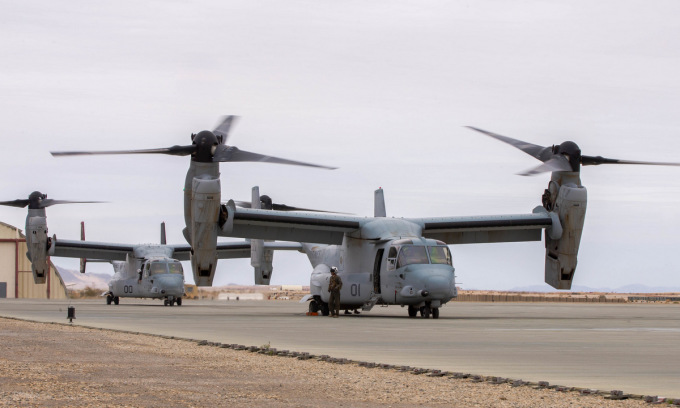 Trực thăng lai MV-22B thủy quân lục chiến Mỹ diễn tập tại bang California hồi tháng 12/2021. Ảnh: USMC.