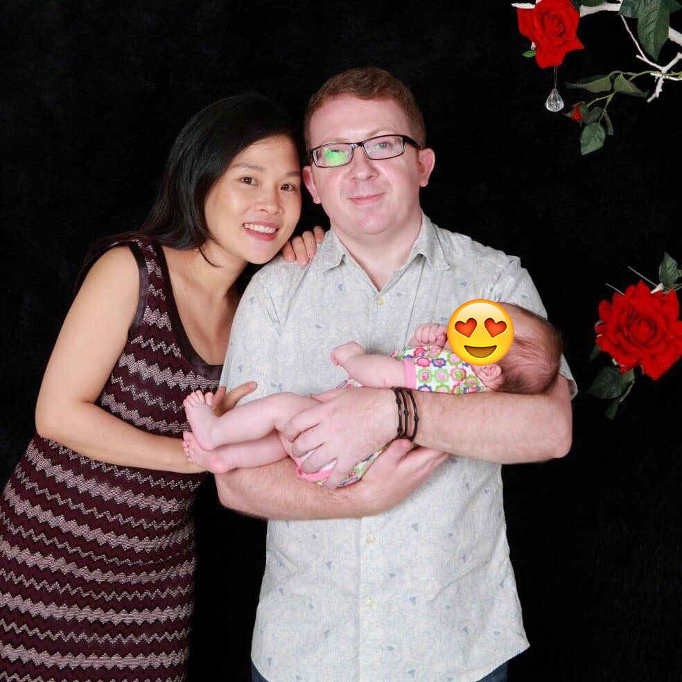 Hơn 8 năm về trước, chị May (tên thật là Lê Thủy, hiện 34 tuổi, quê ở huyện Quảng Xương, Thanh Hóa) quen anh James Seymour (hiện 42 tuổi, người Ireland) qua mạng xã hội. Khi đó, anh James đang làm việc trong ngành đồ họa mỹ thuật tại Nhật.