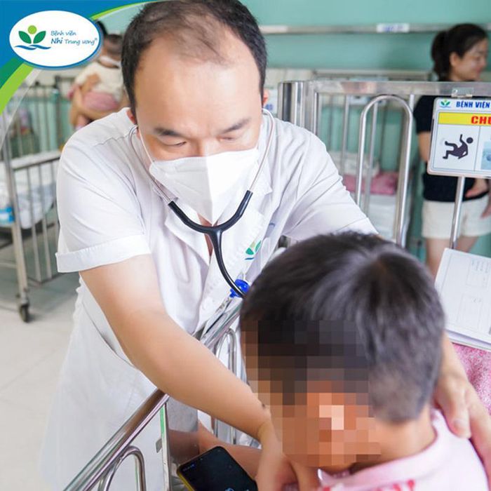 Bác sĩ thăm khám cho bệnh nhi sau nội soi gắp dị vật.