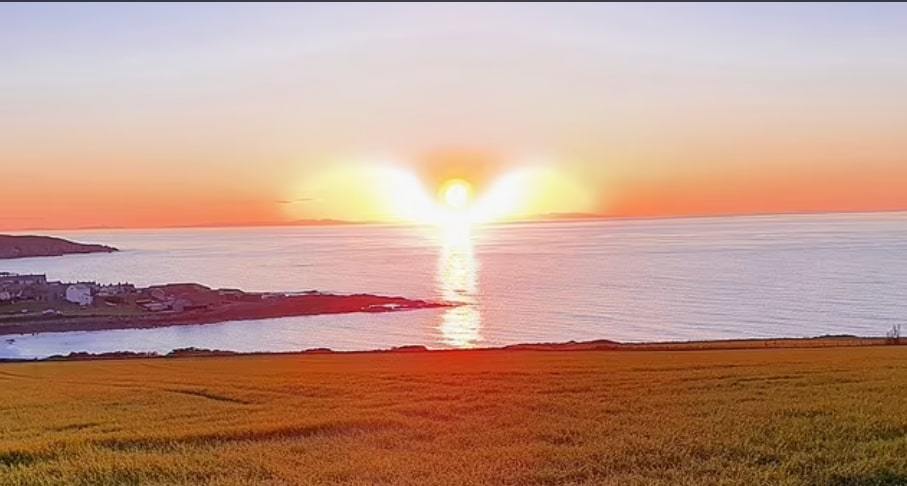 Chỉ sử dụng điện thoại Stuart Murray ghi lại khoảnh khắc đặc biệt lúc mặt trời lặn, dường như tạo ra ảo ảnh quang học với dải ánh sáng trên biển.