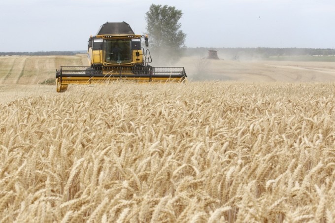 Máy thu hoạch lúa mì trên cánh đồng gần làng Krasne, vùng Chernihiv, Ukraine hồi năm 2019. Ảnh: AFP.