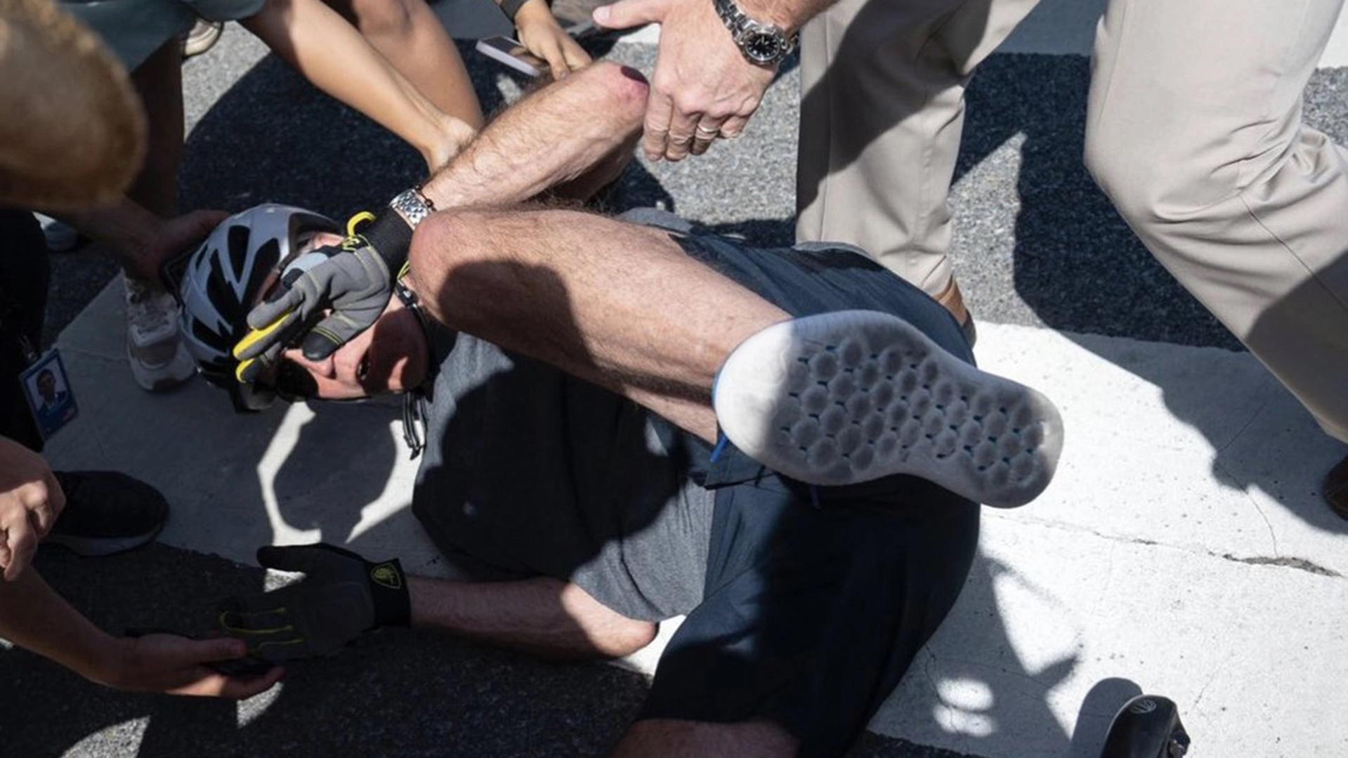 Tổng thống Joe Biden bị tai nạn khi ngã xe đạp và mọi người vội vã chạy đến chỗ trợ lý của ông.