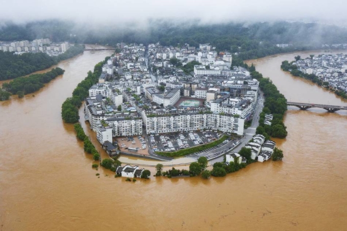 Mưa lớn gây ngập lụt ở Vụ Nguyên, tỉnh Giang Tây hôm 20/6. Ảnh: AFP.
