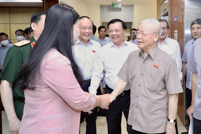 Ngày 23-6, Tổng Bí thư Nguyễn Phú Trọng cùng các đại biểu Quốc hội (QH) thuộc Đơn vị bầu cử số 1, Đoàn Đại biểu QH TP Hà Nội đã tiếp xúc cử tri các quận Đống Đa, Ba Đình, Hai Bà Trưng để báo cáo kết quả kỳ họp thứ 3 QH khóa XV.