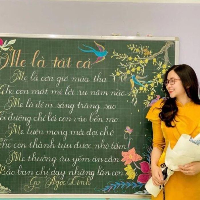 Bài thơ như biến thành một tác phẩm nghệ thuật với nét chữ sắc nét được ví như “rồng bay phượng múa”. Ngoài ra, nhan sắc xinh đẹp của cô giáo trẻ cũng được cộng đồng mạng chú ý hơn cả.