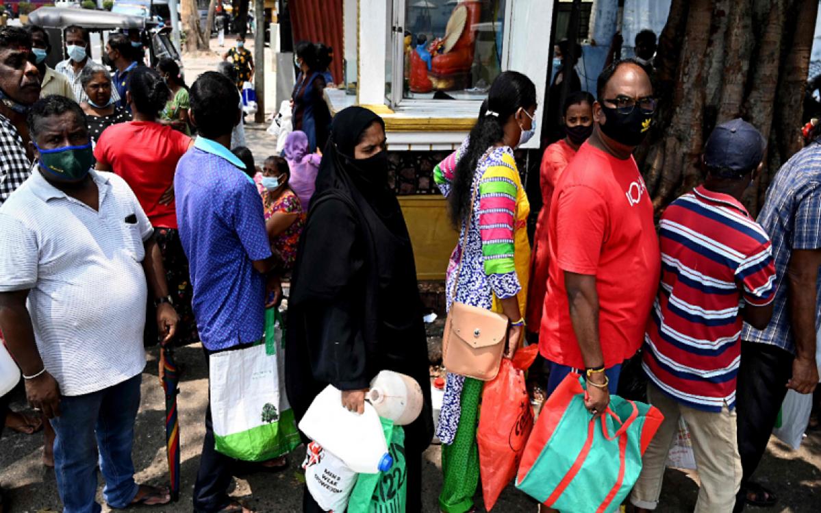 Người dân xếp hàng dài để mua dầu hỏa về sử dụng trong gia đình tại một trạm xăng ở Colombo, Sri Lanka. Ảnh AFP
