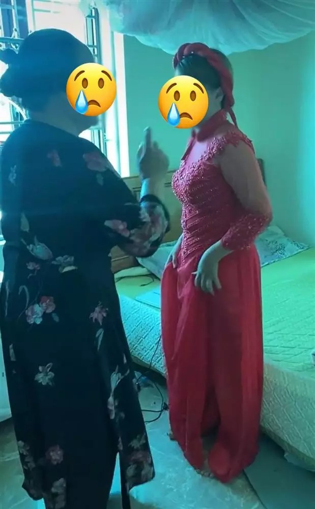 Bị mẹ chồng "chụp mũ", cô dâu mặc áo dài đỏ vội vàng lên tiếng thanh minh. Cô cho hay trước khi lấy nhau, chồng của mình tên T., đã biết và chấp nhận hoàn cảnh của vợ bởi vậy 2 bên mới đồng ý cưới.