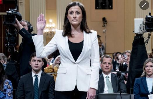 Cựu trợ lý Nhà Trắng Cassidy Hutchinson cho lời khai trong buổi điều trần. Ảnh: New York Times.