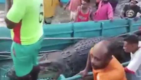 Các tình nguyện viên đã tập hợp truy bắt con cá sấu, trói lại và đưa lên thuyền. Sau đó, những người này mổ bụng con cá sấu và tìm thấy nhiều mảnh thi thể người được nghi là của nam công nhân xây dựng.