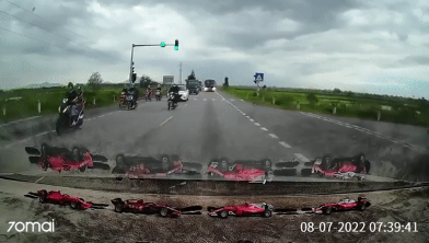 Vụ việc xảy ra trên một cung đường có nhiều phương tiện đang di chuyển. Khi đèn tín hiệu giao thông chuyển màu xanh. Chiếc xe ô tô có gắn camera hành trình cùng nhiều phương tiện nhấn ga vượt qua nút giao.