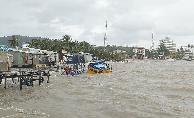 Khoảng 14h, tàu do ông Đặng Văn Nhiều làm thuyền trưởng khi vào cửa biển Dương Đông (TP Phú Quốc) bị sóng đánh lật. Lực lượng biên phòng, người dân địa phương cứu được 5 người. Mưa to, gió lớn khiến việc tìm kiếm hai người còn lại gặp khó khăn.