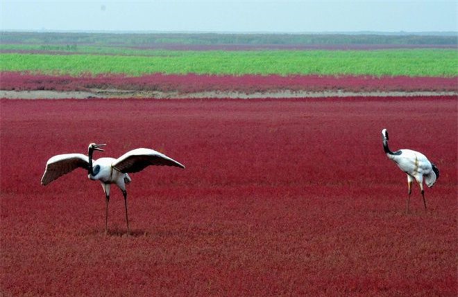 Bãi biển độc đáo ở Trung Quốc bình thường trong xanh nhưng đến mùa thu chuyển màu đỏ sặc sỡ đẹp mê hồn. Đặc biệt hơn là màu đỏ rực của bãi biển này không phải do cát hay phù sa như nhiều người tưởng.