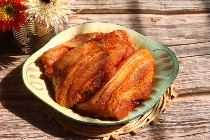Chọn thịt dọi quế với nạc mỡ đan xen, dính thành khối liền là ngon nhất.