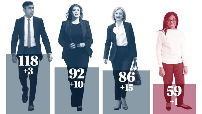 Ba ứng viên cuối cùng trong đường đua vào ghế lãnh đạo đảng Bảo thủ và Thủ tướng Anh lộ diện với số phiếu bầu lần lượt là 118, 92 và 86. (Nguồn: The Times)