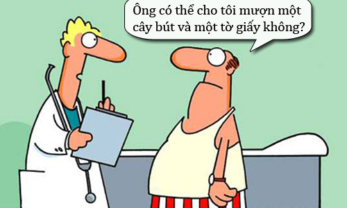– Bác sĩ có thể cho tôi mượn một cái bút và một tờ giấy được không?