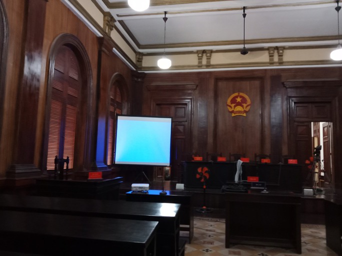 Theo ghi nhận, từ sáng 20-7, TAND TP đã bố trí màn hình chiếu cạnh bàn của HĐXX hướng về bục khai báo nơi các bị cáo đứng.