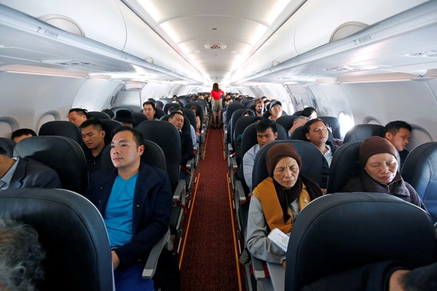 Hành khách trên một chuyến bay của Vietjet Air từ Hà Nội đi TPHCM hôm 12/1/2018