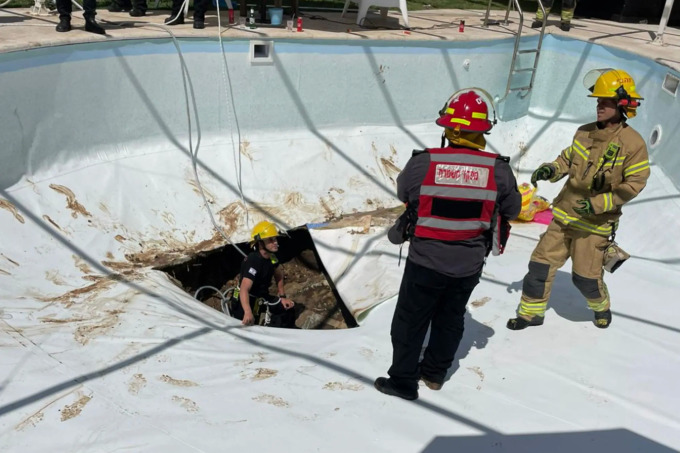 Hố tử thần ngày 21/7 xuất hiện dưới đáy bể bơi tại căn biệt thự ở làng Karmei Yosef, ngoại ô Tel Aviv, nơi đang diễn ra bữa tiệc của một công ty. Toàn bộ nước trong bể bơi rút xuống hố sụt chỉ trong vài giây.