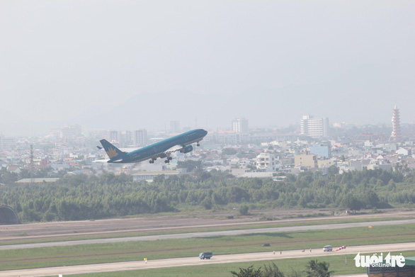 Một máy bay của Vietnam Airlines cất cánh tại sân bay Đà Nẵng - Ảnh: TRƯỜNG TRUNG