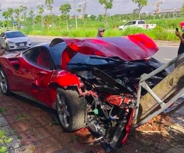Trước đó, ngày 21/7, siêu xe Ferrari 488 GTB đã mất lái, tông làm bật cây xanh ở vỉa hè khu vực ngõ 45, đường Nguyễn Văn Linh, quận Long Biên, Hà Nội.
