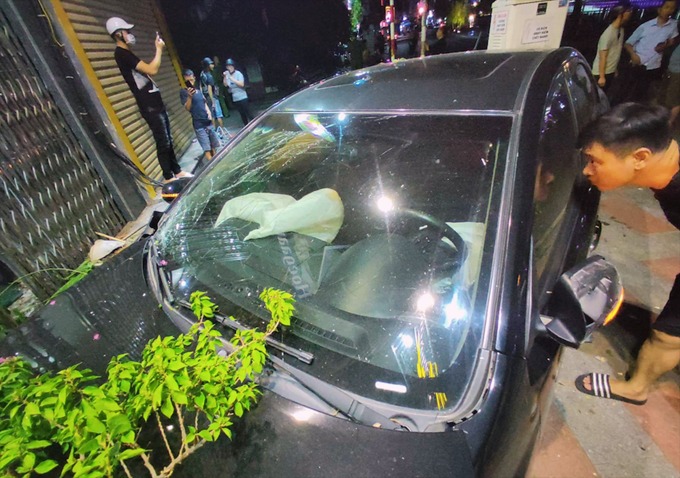 Chiếc xe gây tai nạn chỉ dừng lại khi lao lên vỉa hè, đâm vào cửa số nhà 22 phố Tam Bạc.