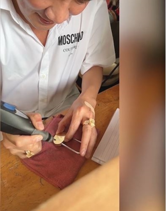 Đáng chú ý, trong lúc khắc tên, Đàm Vĩnh Hưng đã vô tình để lộ tên người yêu.