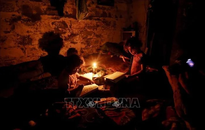 Trẻ em Palestine học bài trong cảnh mất điện ở thành phố Gaza. Ảnh: AFP/TTXVN