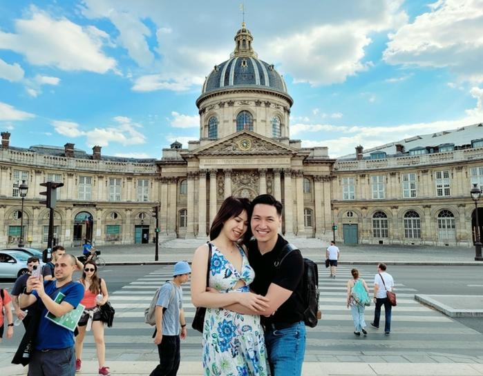 Theo đó, để thưởng cho bà xã khi mang bầu lần 3, Mạnh Trường đã đưa vợ sang trời Âu du hí.