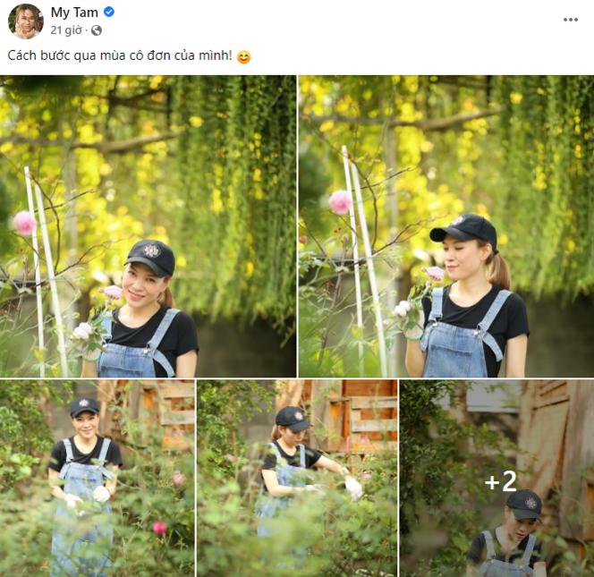 Tuy nhiên mới đây, trên trang cá nhân Facebook, Mỹ Tâm khiến người hâm mộ không khỏi xôn xao khi đăng ảnh khoe nhan sắc xinh tươi, trẻ trung lúc đang làm vườn. Đáng chú ý là giọng ca Họa mi tóc nâu đính kèm caption ẩn ý khẳng định tình trạng độc thân ở thời điểm hiện tại: "Cách bước qua mùa cô đơn của mình".