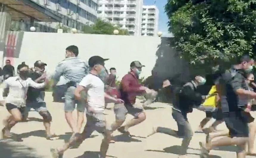 Hình ảnh nhóm người đang tìm cách chạy thoát khỏi casino. (Ảnh: cắt từ clip).