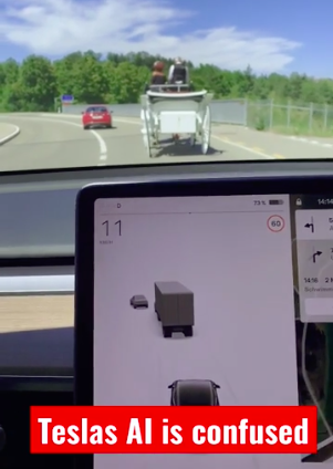 Autopilot, công nghệ tự lái AI trên các dòng xe Tesla, liên tục xác định nhầm chiếc xe ngựa phía trước.