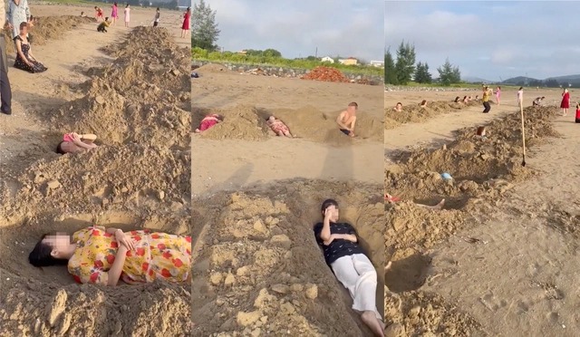 Khi được hỏi về hành động trên, họ cho biết đang nằm thiền cát, tắm cát. Tuy nhiên, những người này đang mặc quần áo bình thường, có người mặc quần áo dài, váy cũng nằm dưới hố cát không giống trong tình trạng đang tắm cát.
