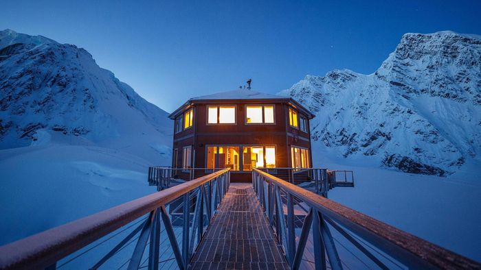 Nhờ vị trí biệt lập của ḿnh, Sheldon Chalet mang đến cho du khách không gian yên tĩnh, đơn độc giữa vùng hoang dă, lạnh giá. Tại đây, bạn có thể nhâm nhi champagne, thư giăn bên ḷ sưởi và ngắm cực quang qua các khung cửa sổ. Du khách đặt pḥng được phục vụ bởi hai hướng dẫn viên, một đầu bếp và một người trợ giúp đặc biệt. Ảnh: Chris Burkard/Sheldon Chalet.