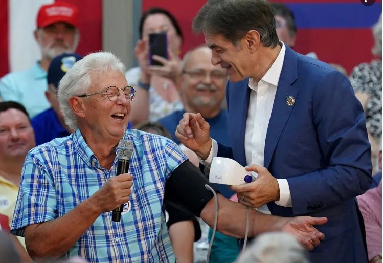 Tiến sĩ Mehmet Oz (phải) - bác sĩ truyền hình nổi tiếng - trong cuộc đua vào Thượng viện. Ảnh: New York Times.