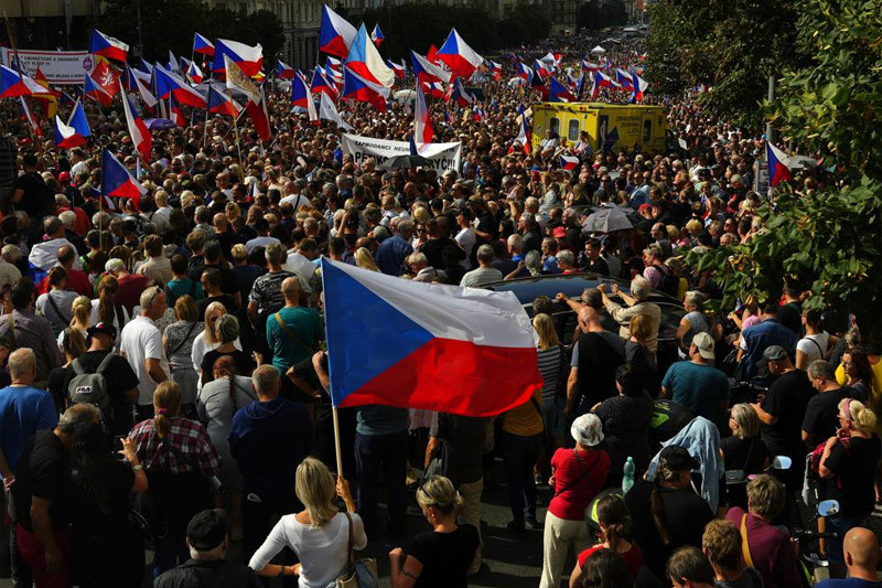 Cảnh sát ước tính, đến giữa trưa 3/9, số người tham gia biểu tình đã lên tới khoảng 70.000 người. Đám đông yêu cầu chính phủ liên minh 5 đảng trung hữu do Thủ tướng Petr Fiala đứng đầu, phải từ chức vì hàng loạt vấn đề, bao gồm cả những chính sách thân phương Tây.
