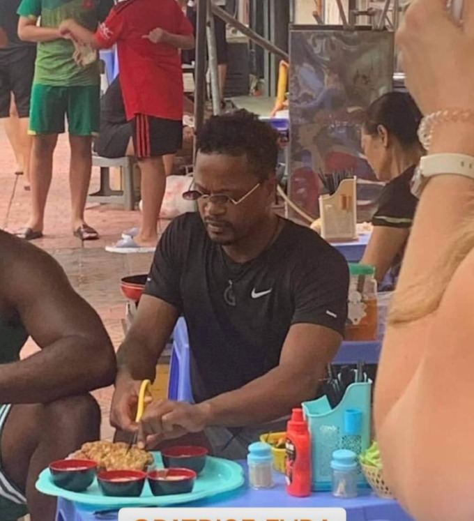 Danh thủ ăn chả rươi ở dốc Hòe Nhai, Hà Nội. Ảnh: Instagram