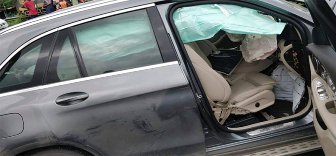 Có thể thấy túi khí trước, túi khí rèm của ôtô đã bung. Ảnh: PTI