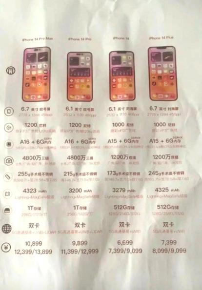 iPhone 14, iPhone 14 Plus, iPhone 14 Pro và iPhone 14 Pro Max vừa lộ bảng thông số kỹ thuật chi tiết trên các trang mạng xã hội của Trung Quốc.