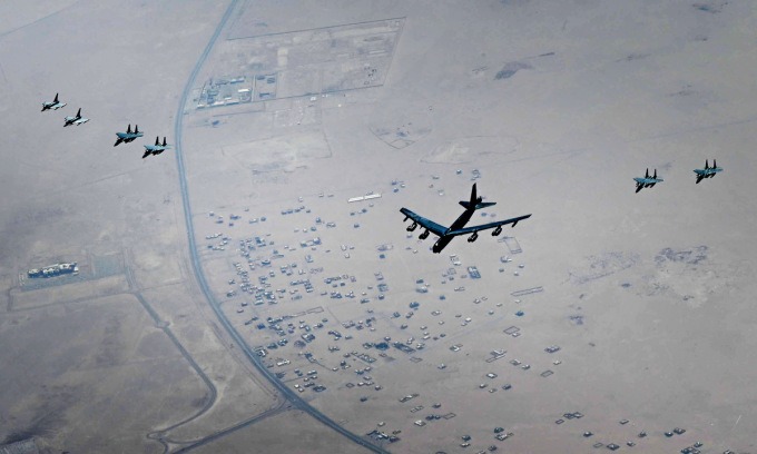 Biên đội B-52H Mỹ xuất phát từ Anh, thực hiện nhiệm vụ tuần tra quanh Trung Đông, khi căng thẳng với Iran gần đây gia tăng.