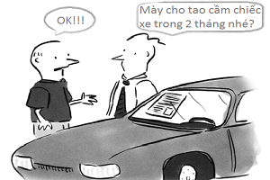 - Mày cho tao cầm chiếc xe này với giá 1 đô la, 2 tháng sau tao sẽ đến chuộc.