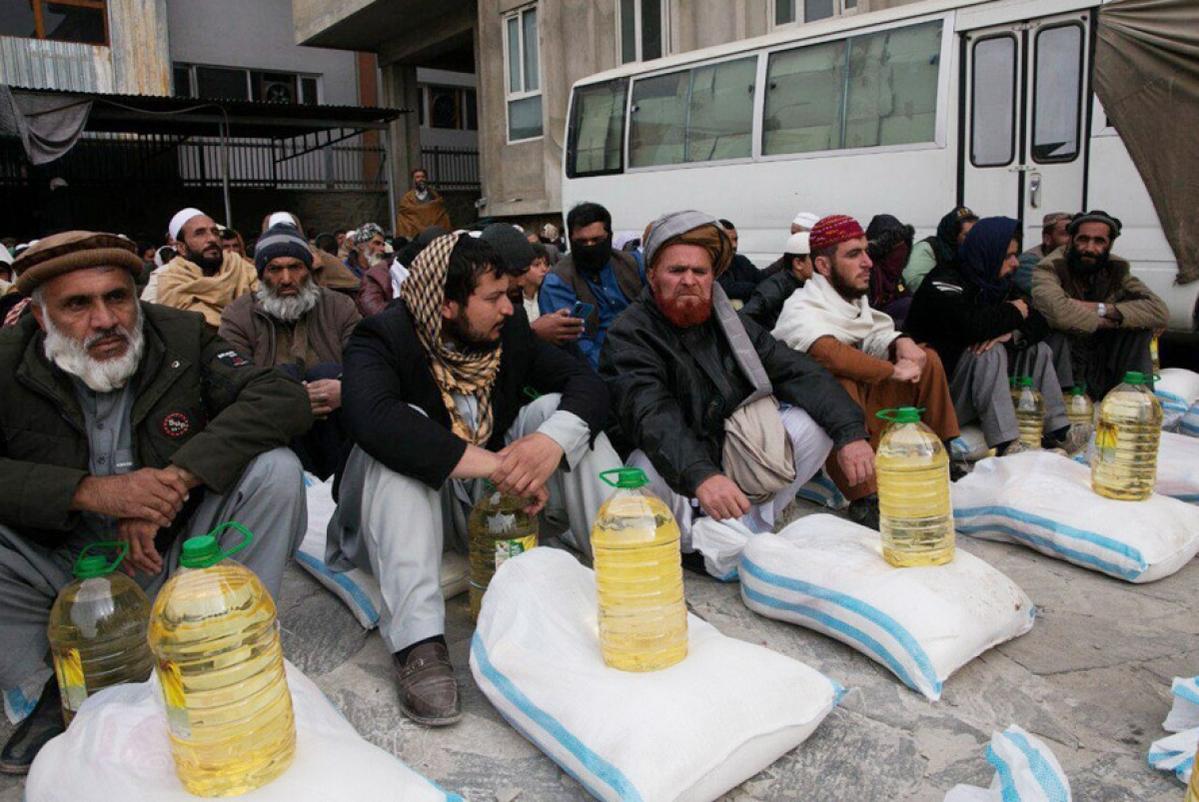 Người dân tại thủ đô Kabul của Afghanistan xếp hàng nhận viện trợ lương thực. (Ảnh: Washington)