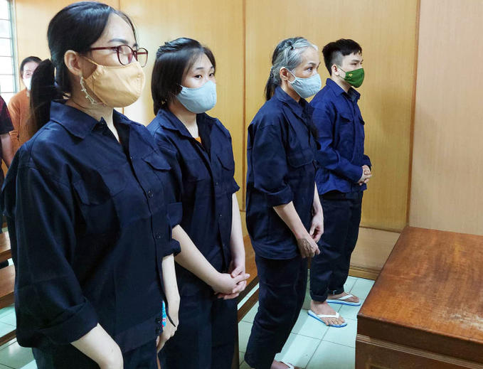 Bị cáo Nhi (thứ 2 từ phải qua) và đồng phạm tại tòa. Ảnh: Bình Nguyên